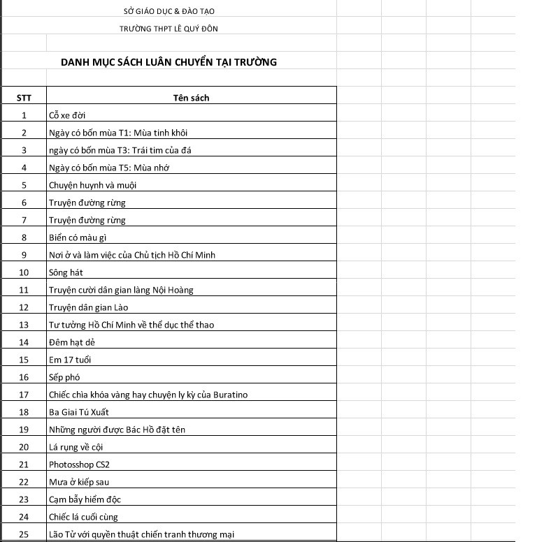 | DANH MỤC SÁCH LUÂN CHUYỂN TẠI TRƯỜNG |