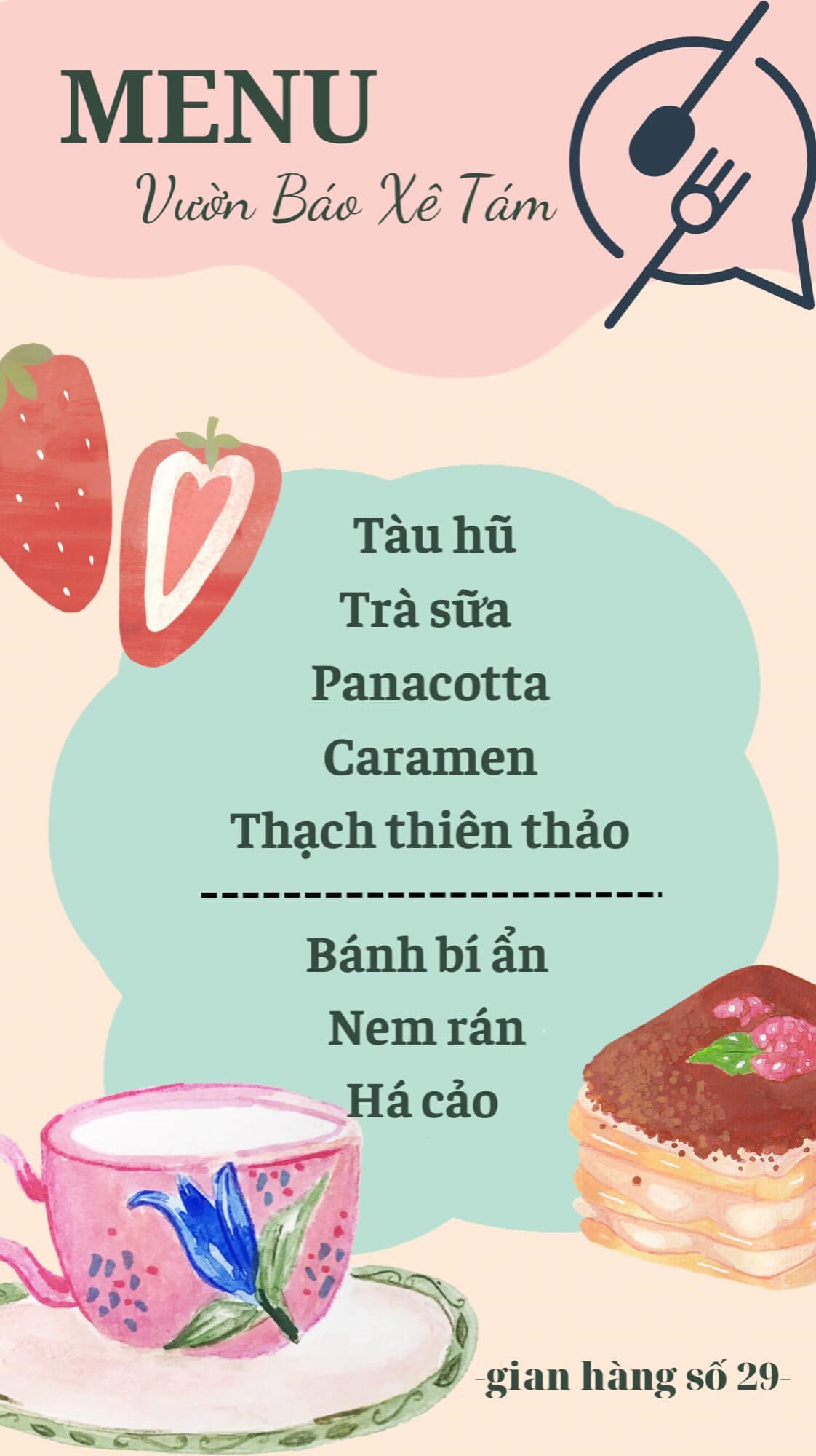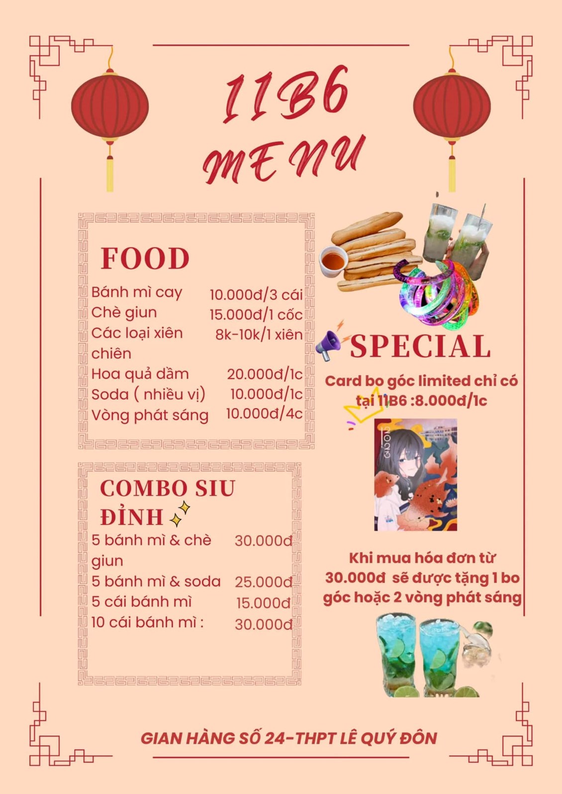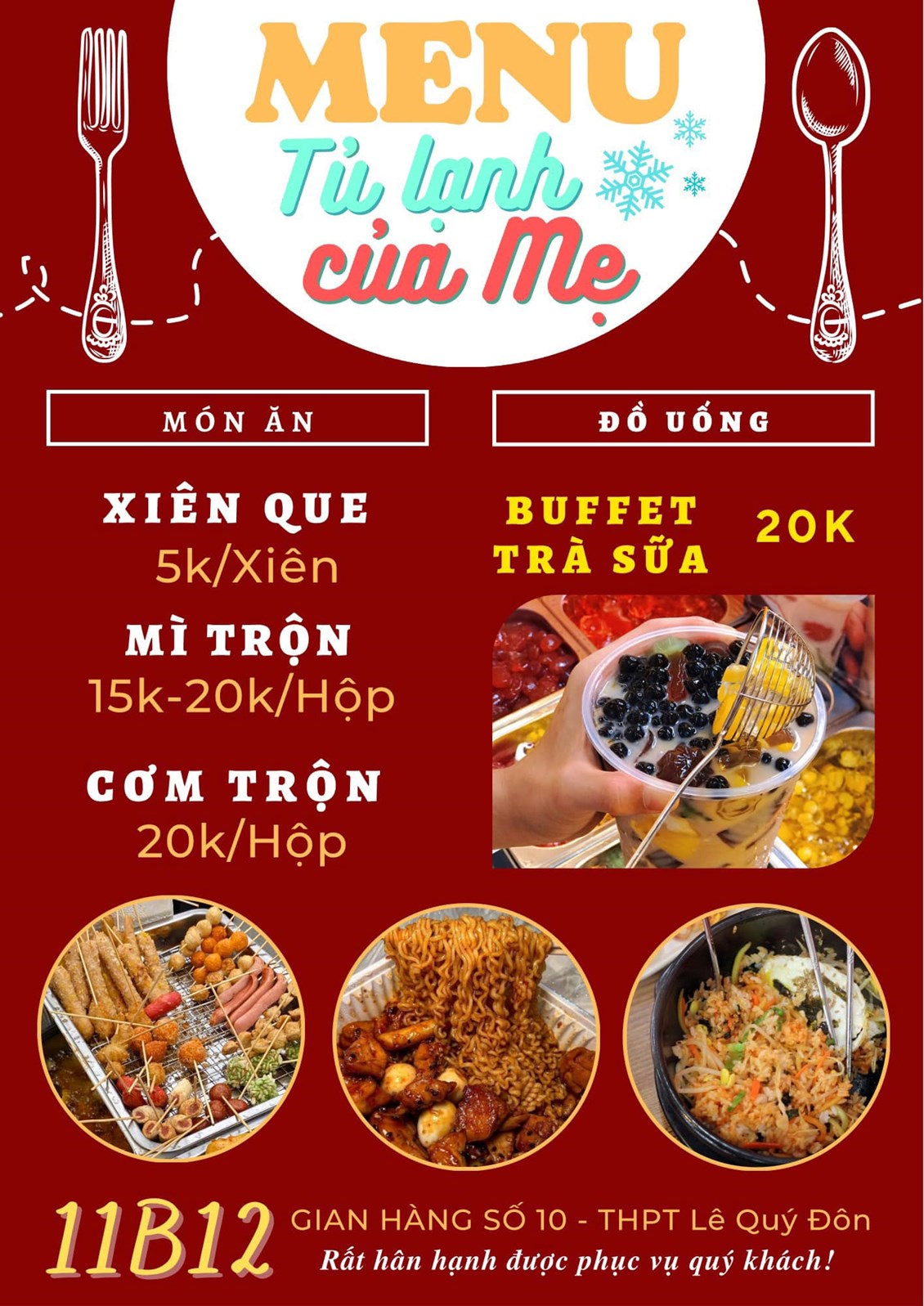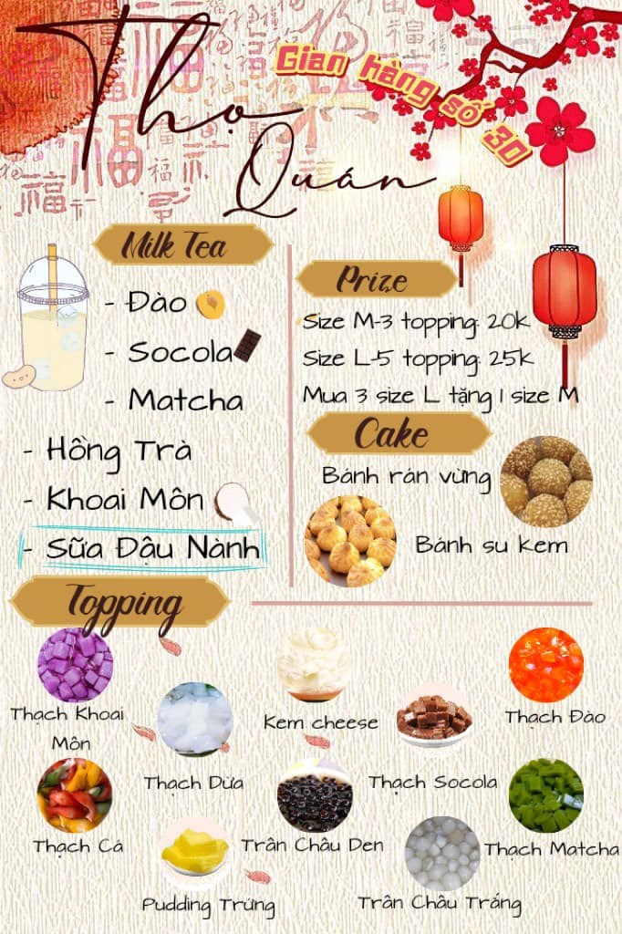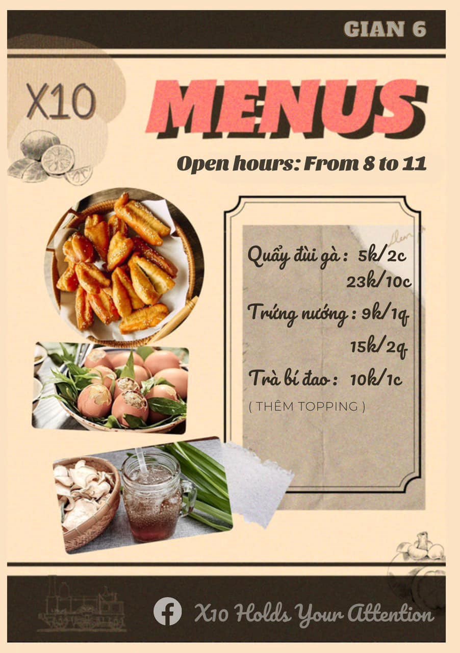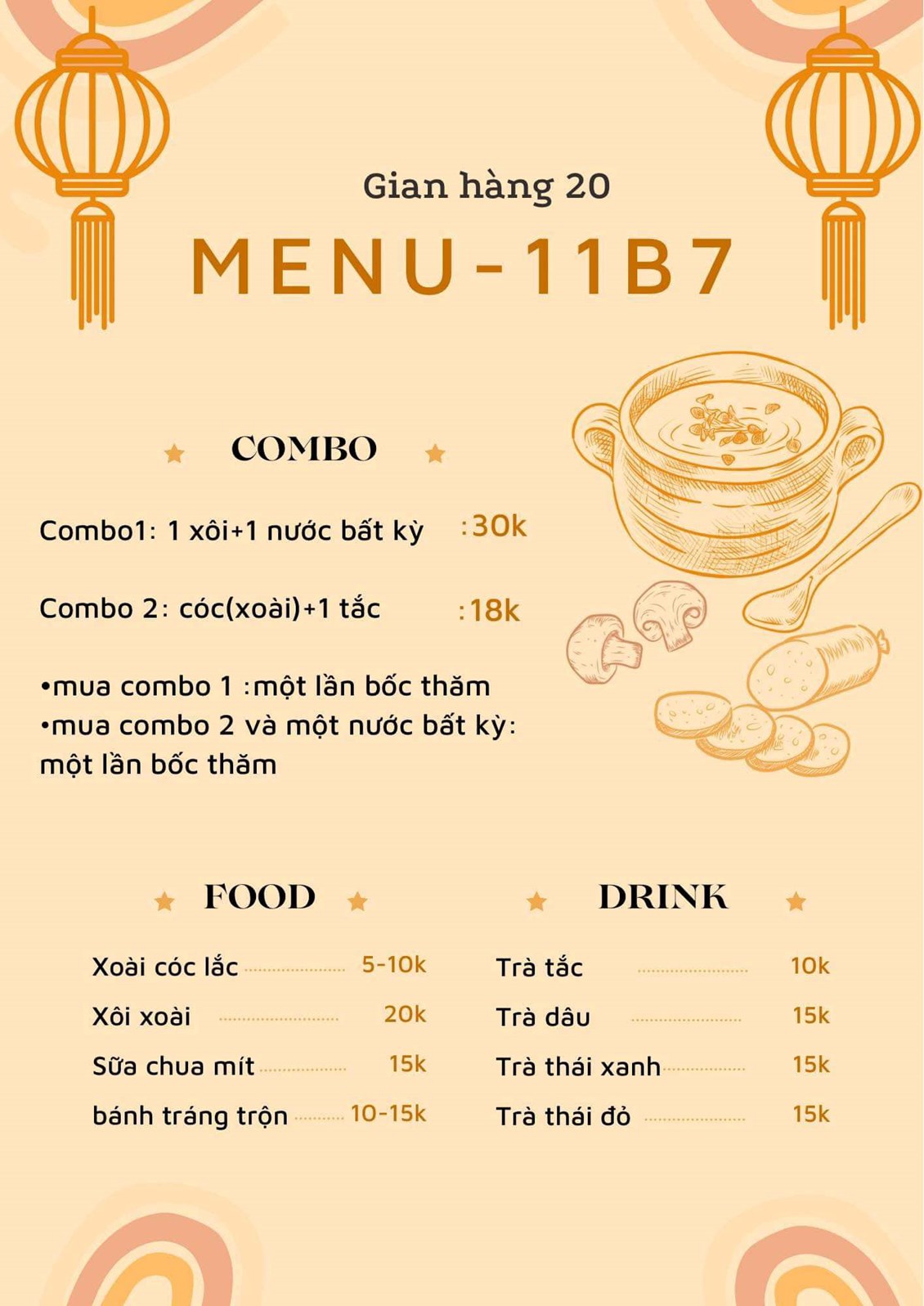 ( sau đây là menu của 1 số gian hàng)