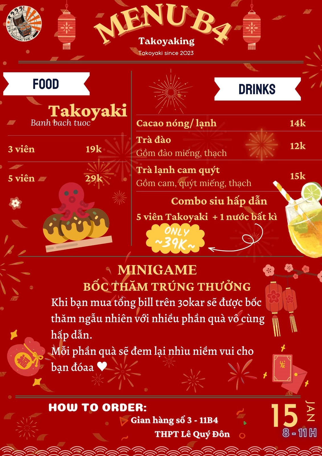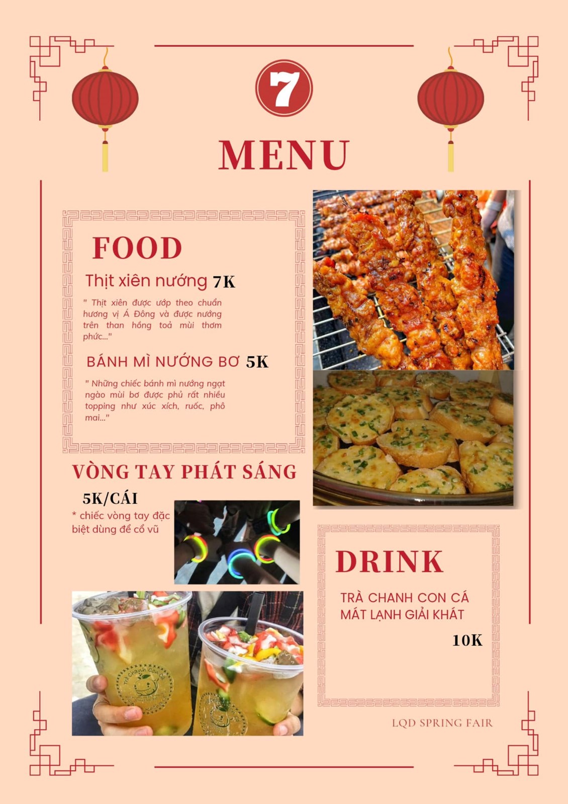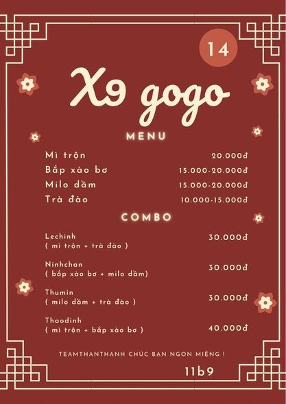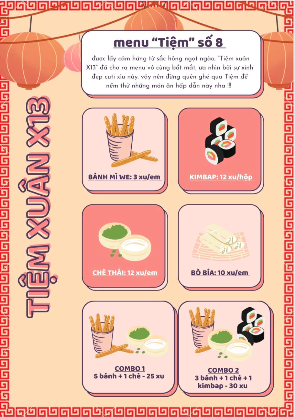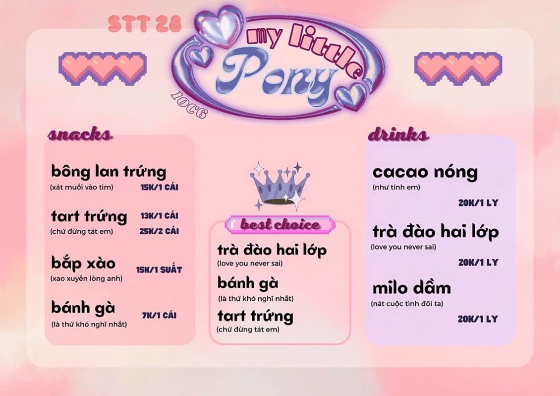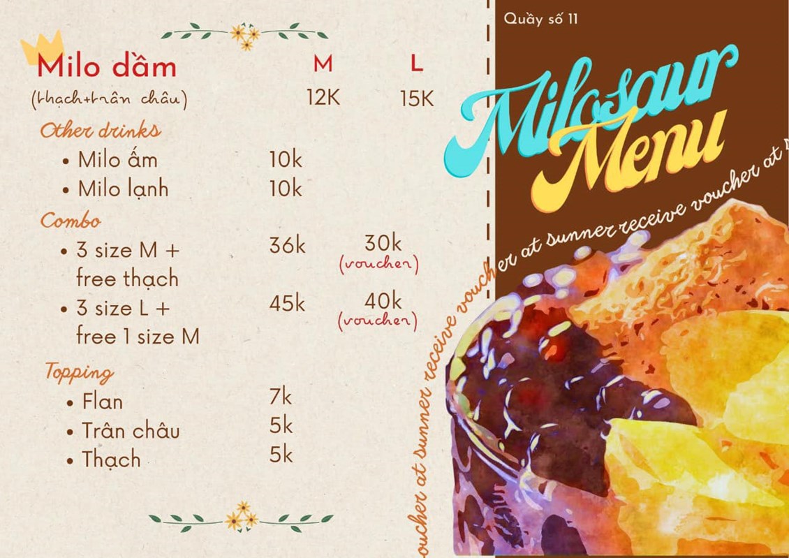 ( sau đây là menu của 1 số gian hàng)