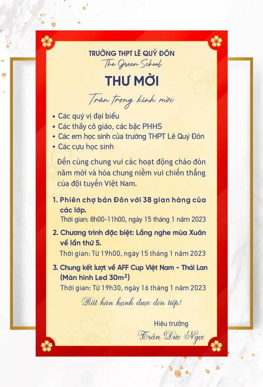 Trân trọng kính mời các vị đại biểu, khách quý, các bậc PHHS và các em học sinh, cựu học sinh của trường về dự chương trình.
