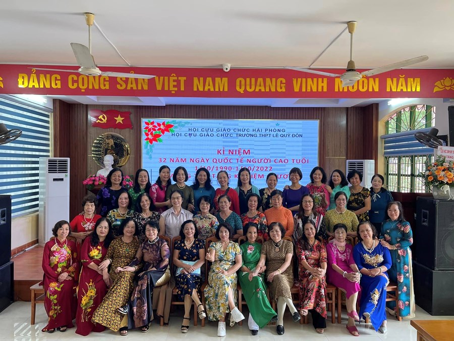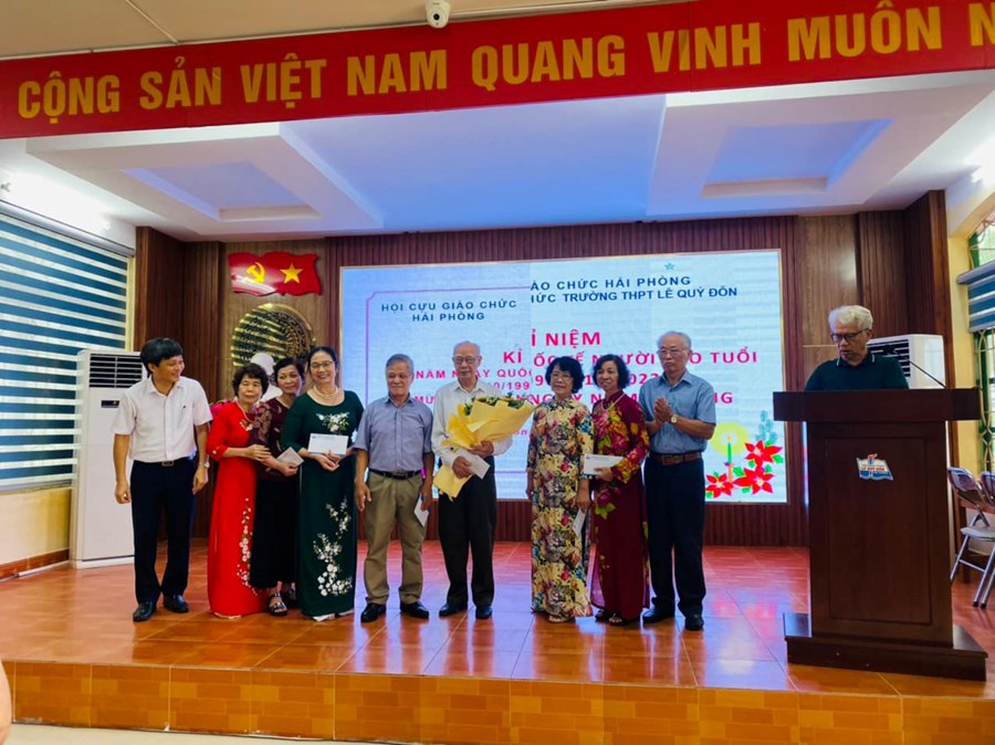 Kỷ niệm 32 năm ngày Quốc tế người cao tuổi 1/10/2022. Ngày Quốc tế người cao tuổi đã trở thành truyền thống của ngôi trường màu xanh, ngày gặp gỡ của các thế hệ CBGVNV đã nghỉ hưu trong Hội cựu giáo chức của trường, gặp nhau để chúc nhau sức khoẻ, hạnh phúc, bình an. Năm nay, đặc biệt nhà trường xin trân trọng chúc mừng thầy Bùi Vĩnh Thuý nguyên Chủ tịch Công đoàn, nguyên tổ trưởng tổ toán của trường, thầy năm nay 90 tuổi, người thầy cao tuổi nhất của trường. Một lần nữa, nhà trường xin kính chúc sức khoẻ các thầy cô nhân ngày người cao tuổi thế giới, luôn hạnh phúc bình an bên gia đình, người thân và đồng hành cùng sự phát triển của THPT Lê Quý Đôn !
