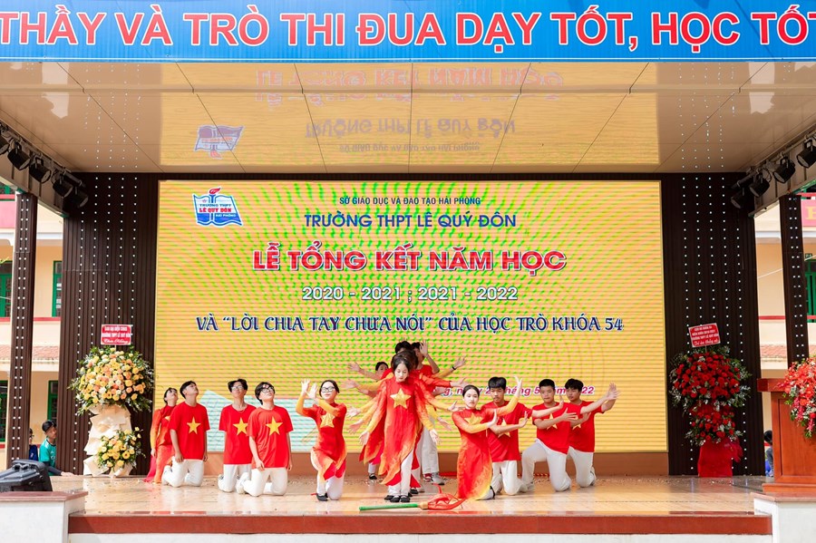Do ảnh hưởng của đại dịch Covid, khoá học trò K54 năm học 2020-2021 chưa được tổ chức Lễ tổng kết năm học và chưa kịp nói lời chia tay với thầy cô, các bạn để bước vào tương lai. Trường THPT Lê Quý Đôn đã tổ chức Lễ tổng kết 2 năm học 2020-2021 và 2021-2022, một lễ tổng kết 2 năm học đặc biệt trong lịch sử của trường và có thể cũng rất ít trường trên toàn quốc làm như vậy. Học trò K54 đã về dự gần như đông đủ, cùng dự Lễ TK với toàn trường. Thành tích của các em cùng kết quả xuất sắc của nhà trường năm học 2021-2022 đã được biểu dương khen thưởng, những bó hoa tươi thắm và lời chia tay của các em đã được gửi đến nhà trường, các thầy cô giáo và đặc biệt là 12 thầy cô GVCN. Trưởng thành rồi nhé K54, chúc các em thành công trên đường đời và luôn nhớ về ngôi trường màu xanh của mình nhé.