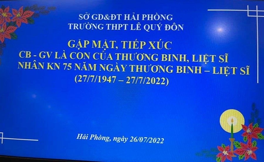 Kỷ niệm 75 năm Ngày Thương binh-Liệt sĩ 27-7-2022, trường THPT Lê Quý Đôn có nhiều hoạt động đền ơn đáp nghĩa, tri ân người có công với đất nước, các thương binh, liệt sĩ.