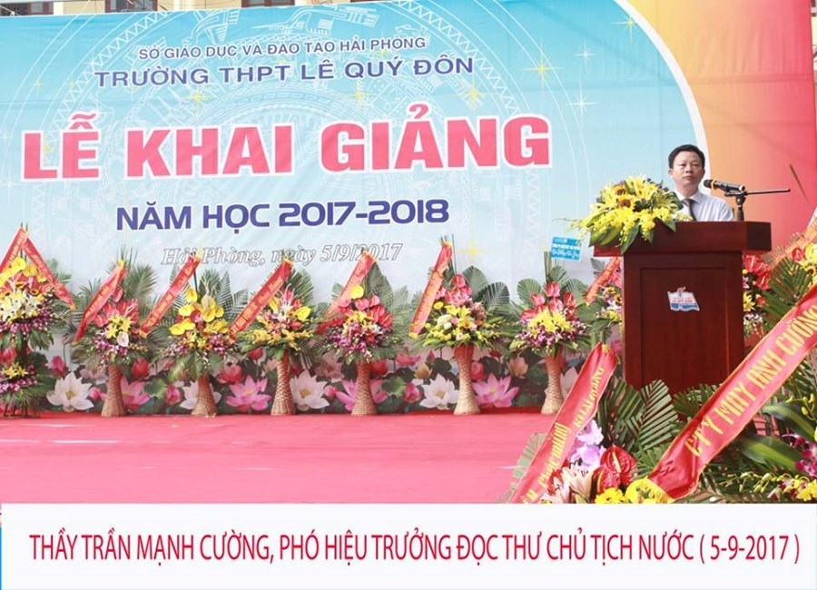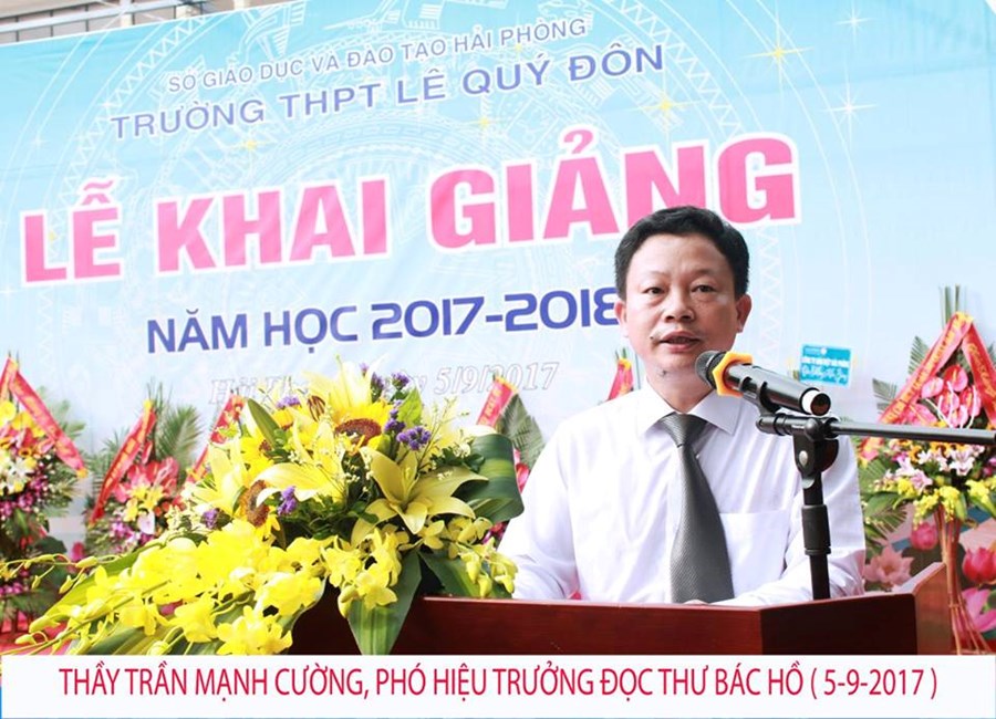 Năm học mới của thầy và trò trường THPT Lê Quý Đôn đã chính thức bắt đầu. Trong không khí tưng bừng, phấn khởi này, với những sự quan tâm đặc biệt của các cấp lãnh đạo, chắc hẳn mỗi thầy cô giáo đều có những suy nghĩ, những tâm trạng khác nhau. Để thể hiện những tâm trạng đó Thầy Trần Mạnh Cường – PHT nhà trường – đại diện cho tập thể Hội đồng sư phạm nhà trường lên đọc thư Bác Hồ, thư Chủ Tịch Nước và Quyết tâm thư nhân ngày khai trường.