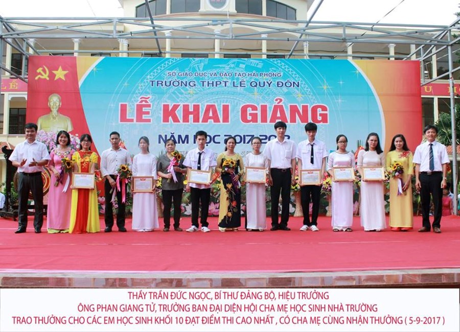 Cùng các bậc phụ huynh trong Ban đại diện Hội CMHS các lớp, toàn thể các bậc phụ huynh khối 10, các thầy cô giáo trong hội đồng giáo dục và toàn thể các em học sinh của trường THPT Lê Quý Đôn. Đặc biệt, có 52 em học sinh của nhà trường đã đạt kết quả cao nhất trong kỳ thi THPT Quốc gia cùng về dự lễ khai giảng.