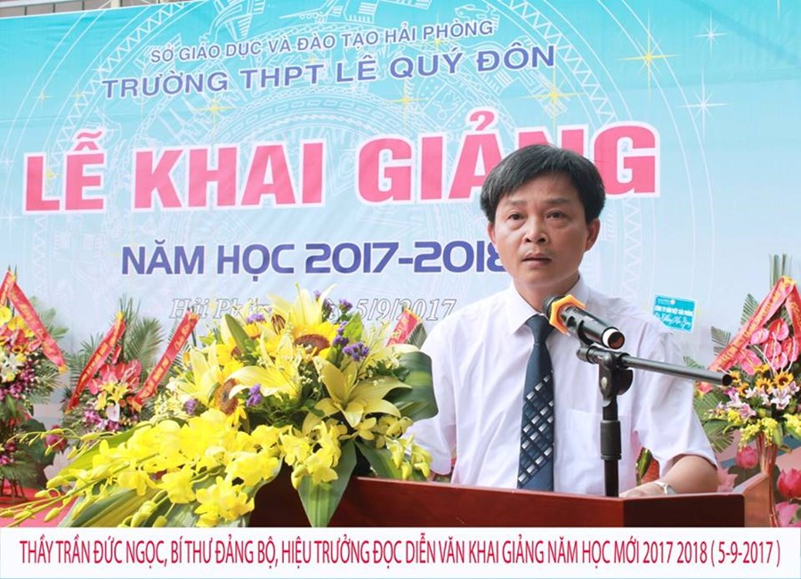 Sau một mùa hè đầy vui tươi, bổ ích, chúng ta lại được gặp nhau với bao niềm vui phấn khởi và sự chờ đợi đã đến. Tất cả đang hồi hộp chờ đợi tiếng trống khai trường của năm học mới, đại diện nhà trường Thầy Trần Đức Ngọc - Bí thư đảng bộ - Hiệu trưởng nhà trường lên đọc diễn văn khai giảng năm học mới và đánh trống khai trường. Kèm theo là những lời cảm ơn đến các vị đại biểu, lời chúc đến các thầy cô và lời dặn dò đến các học trò thân yêu " Một năm học mới: dạy tốt học tốt, chăm ngoan học giỏi và ứng xử văn minh theo đúng tiêu chí mà nhà trường đã đề ra, thể hiện phong cách của trường THPT Lê Quý Đôn "Xanh - Sạch - Đẹp".