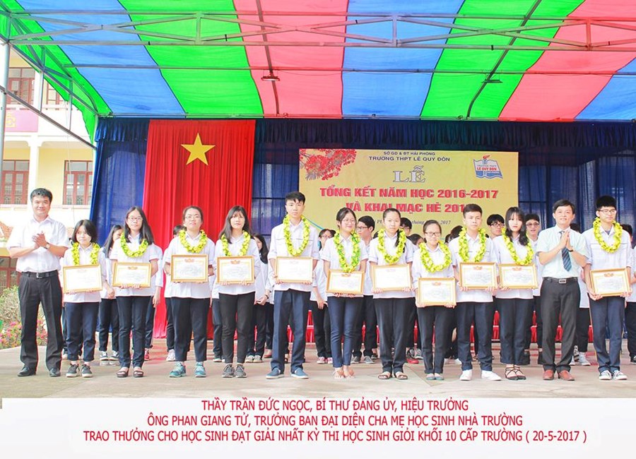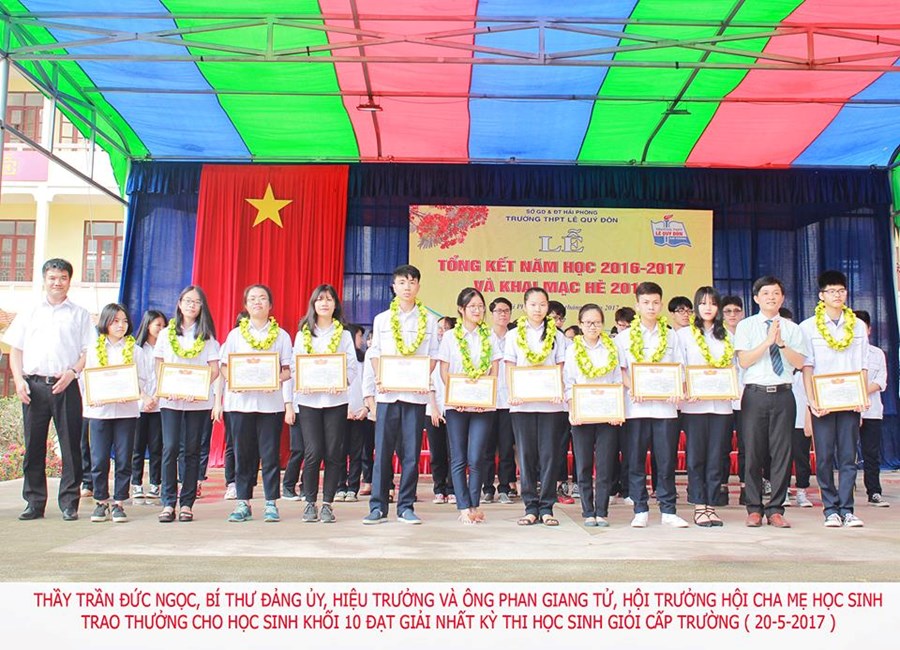 Tại buổi lễ, Có Ông Nguyễn Xuân Trường - Giám đốc Sở GD&ĐT Hải Phòng, Ông Nguyễn Huy Hoàng - Tổng giám đốc công ty TNHH Huy Hoàng, Ông Phan Giang Tử - Hội trưởng Hội cha mẹ học sinh và Đại diện nhà trường Ông Trần Đức Ngọc - Hiệu trưởng nhà trường đã lên trao phần thưởng, khen thưởng và tuyên dương các tập thể và các cá nhân học sinh đã đạt những thành tích xuất sắc trong học tập, đã rèn luyện tích cực tham gia các hoạt động phong trào.
