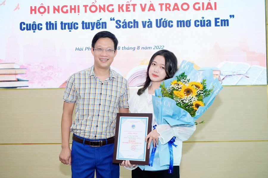 Sáng 18/8/2022, Sở Thông tin và Truyền thông thành phố Hải Phòng tổ chức Hội nghị tổng kết và trao giải Cuộc thi trực tuyến “Sách và Ước mơ của Em”. 01 Giải Nhất cuộc thi đã được BTC trao cho em Phạm Hải Bình, Trường THPT Lê Quý Đôn.