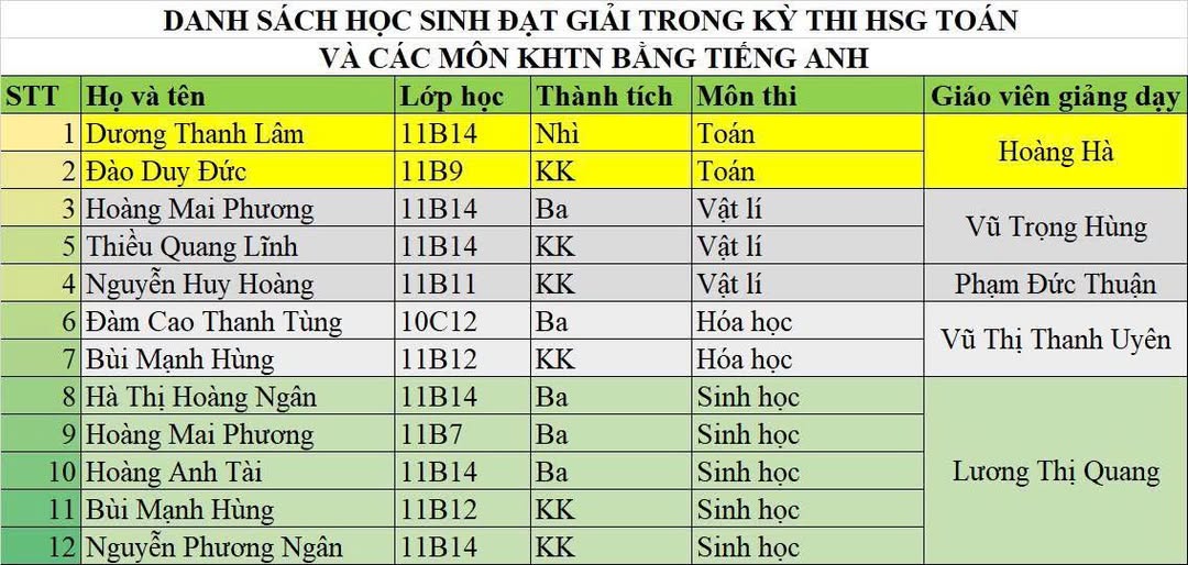 Chúc mừng các thầy cô và các em học sinh trường THPT Lê Quý Đôn đã đạt thành tích trong cuộc thi Toán và các môn Khoa học Tự nhiên bằng Tiếng Anh cấp Thành phố