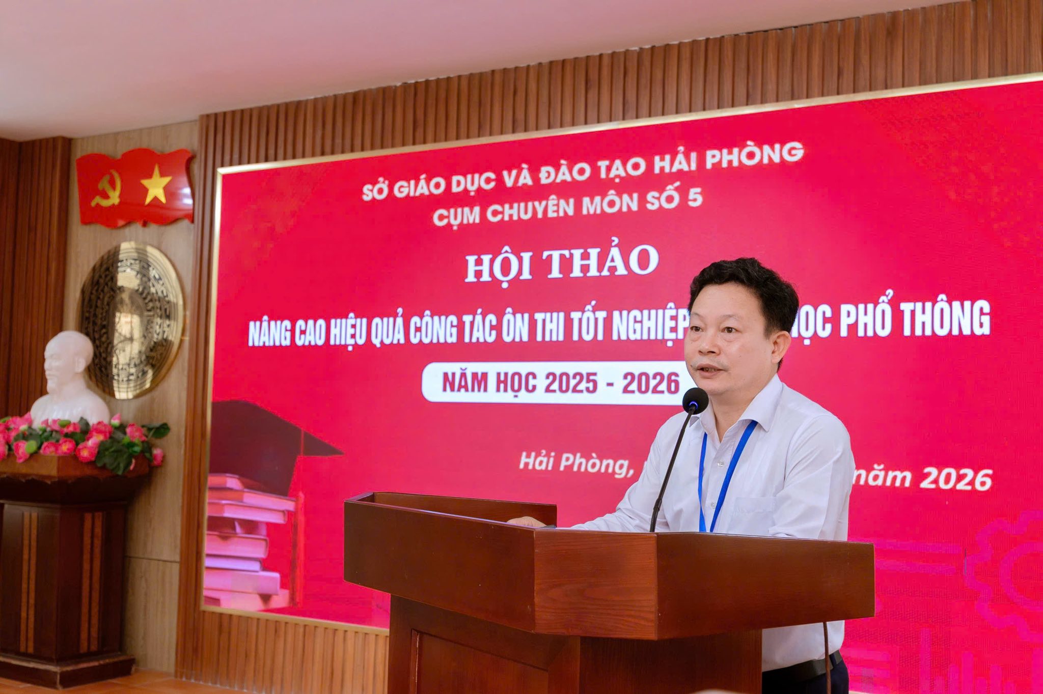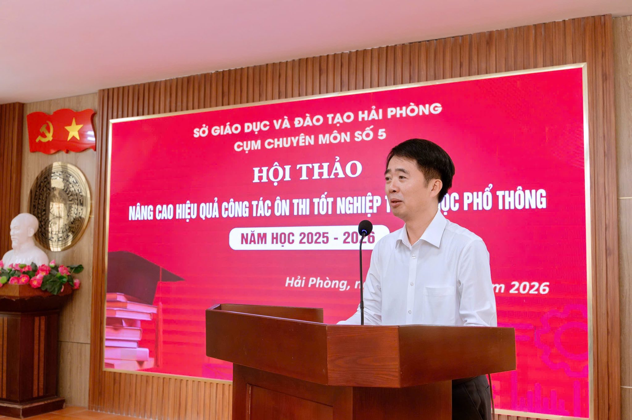 Căn cứ Công văn số 5777/SGDĐT-GDTrH ngày 20/8/2025 của Sở Giáo dục và Đào tạo Hải Phòng về việc hướng dẫn thực hiện nhiệm vụ Giáo dục trung học năm học 2025–2026; căn cứ kết quả Hội thảo tăng cường công tác ôn thi tốt nghiệp THPT năm học 2025–2026 dành cho các bộ môn theo Kế hoạch số 539/KH-SGDĐT ngày 29/01/2026 của Sở Giáo dục và Đào tạo Hải Phòng; nhằm triển khai hiệu quả các nhiệm vụ đã đề ra, đồng thời tăng cường sự phối hợp, trao đổi chuyên môn giữa các trường THPT trong cụm, Ngày 17/3/2026 tại trường THPT Lê Quý Đôn - Cụm chuyên môn số 5 tổ chức Hội thảo “Nâng cao hiệu quả công tác ôn thi Tốt nghiệp THPT năm 2026”.