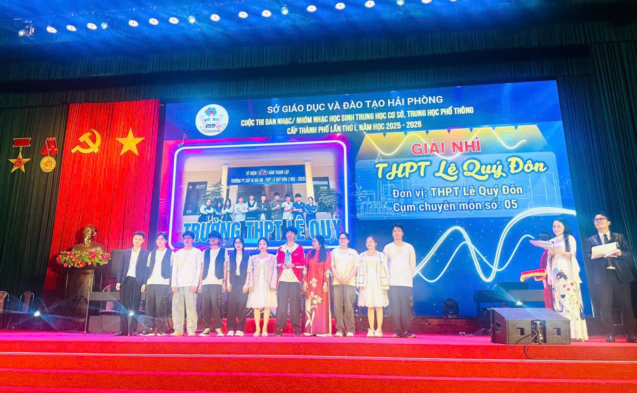 Xin chúc mừng Band nhạc Trường THPT Lê Quý Đôn đã xuất sắc giành GIẢI NHÌ tại Cuộc thi Ban nhạc/Nhóm nhạc học sinh THCS, THPT cấp thành phố năm học 2025–2026 do Sở Giáo dục và Đào tạo Hải Phòng tổ chức!